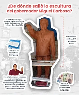 El ayuntamiento de Zinacatepec, que encabeza Mario Roberto Huerta Gómez, primo hermano del gobernador Luis Miguel Barbosa Huerta, colocó una estatua del mandatario en la presidencia municipal, lo cual desató una ola de críticas, burlas y "memes", pero ahora se sabe quién la hizo, de qué está hecha y cuál es su valor.