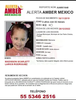 Se mantiene una Alerta Amber por las hermanas Madisson Scarlett de 3 años, Érika Aitana de 1 año y una bebé no registrada, hijas de Ana Karen, víctima de violencia vicaria en Puebla, luego que pese a existir una orden judicial, su pareja se negara a entregar a las menores ocultándolas en una casa vecina.
